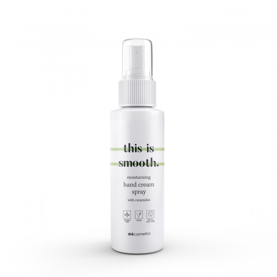 De “this is smooth” handcrème spray is een niet-plakkerige, veerlichte handcrème in een sprayfles. Met 3 essentiële ceramiden helpt deze handcrème spray de vochtbarrière te versterken, uitdroging te voorkomen en uw handen er jeugdig en gezond uit te laten zien. Deze unieke vloeibare handcrème is niet vet en wordt snel opgenomen. De zorgvuldig samengestelde formule hydrateert en biedt langdurige bescherming. Niet alleen voelen uw handen gerevitaliseerd aan, ze zien er ook stralend en soepel uit. dit is glad. heeft een milde geur van roze peper en jasmijn. Het spray-effect zorgt voor een direct fris gevoel.